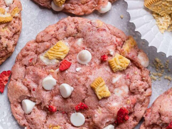 Fold in the golden oreos, freeze dried strawberries, and white chocolate chips.